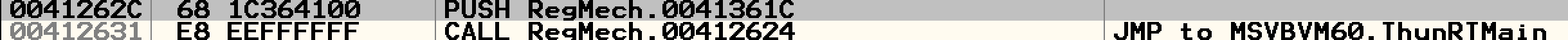 Visual Basic 프로그램은 OEP에서 'VB' 문자열을 스택에 저장하고 VB dll로 분기하기 위해 ThunRTMain을 호출한다.