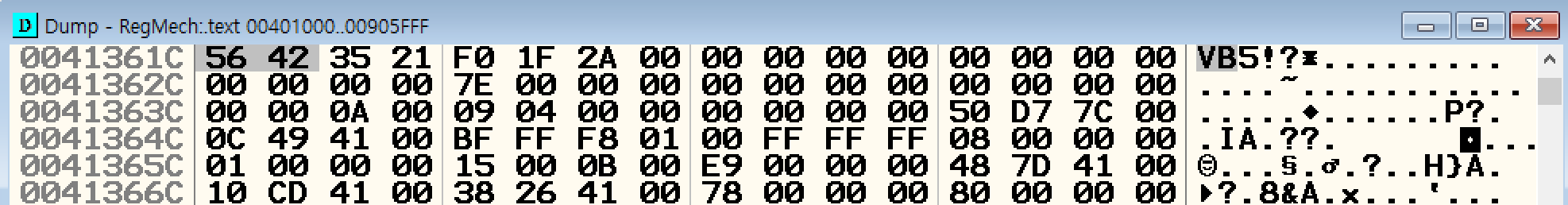 프로그램이 실행된 후 memory map을 살펴보면 MSVBVM60 dll이 import 된 것을 볼 수 있다.