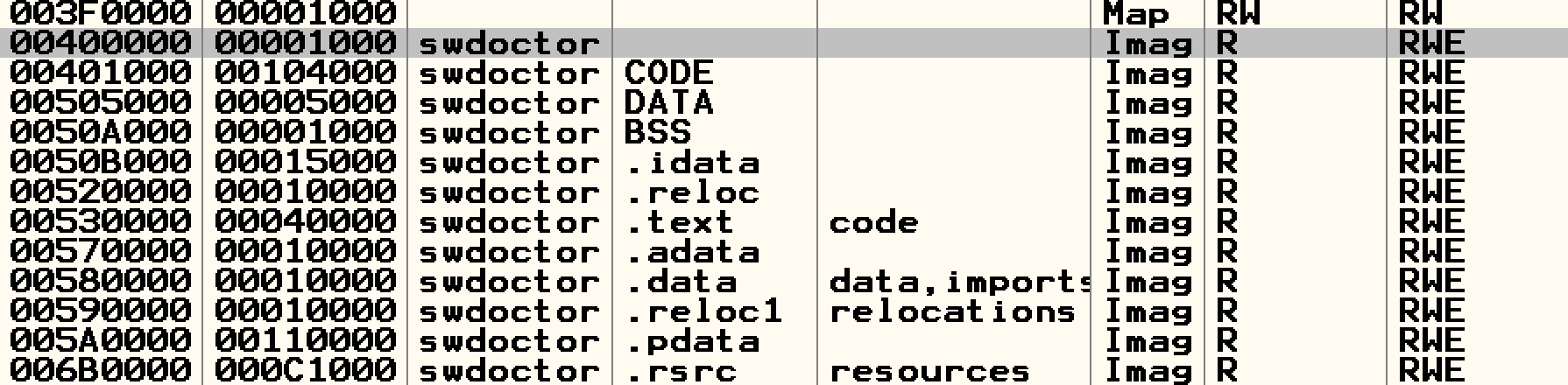 PE header가 없는 것을 볼 수 있다.