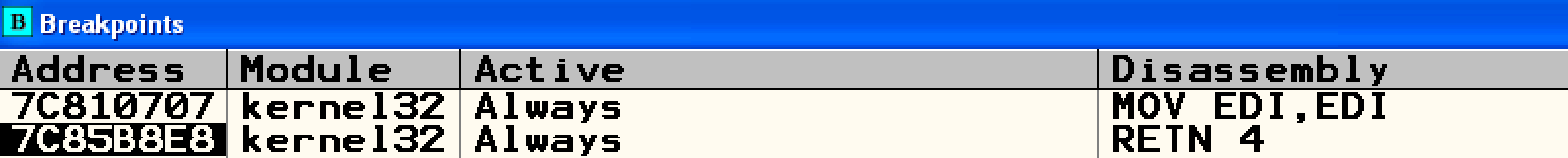 Command bar에 bp OutputDebugStringA 를 해주어 bp를 걸어준다.