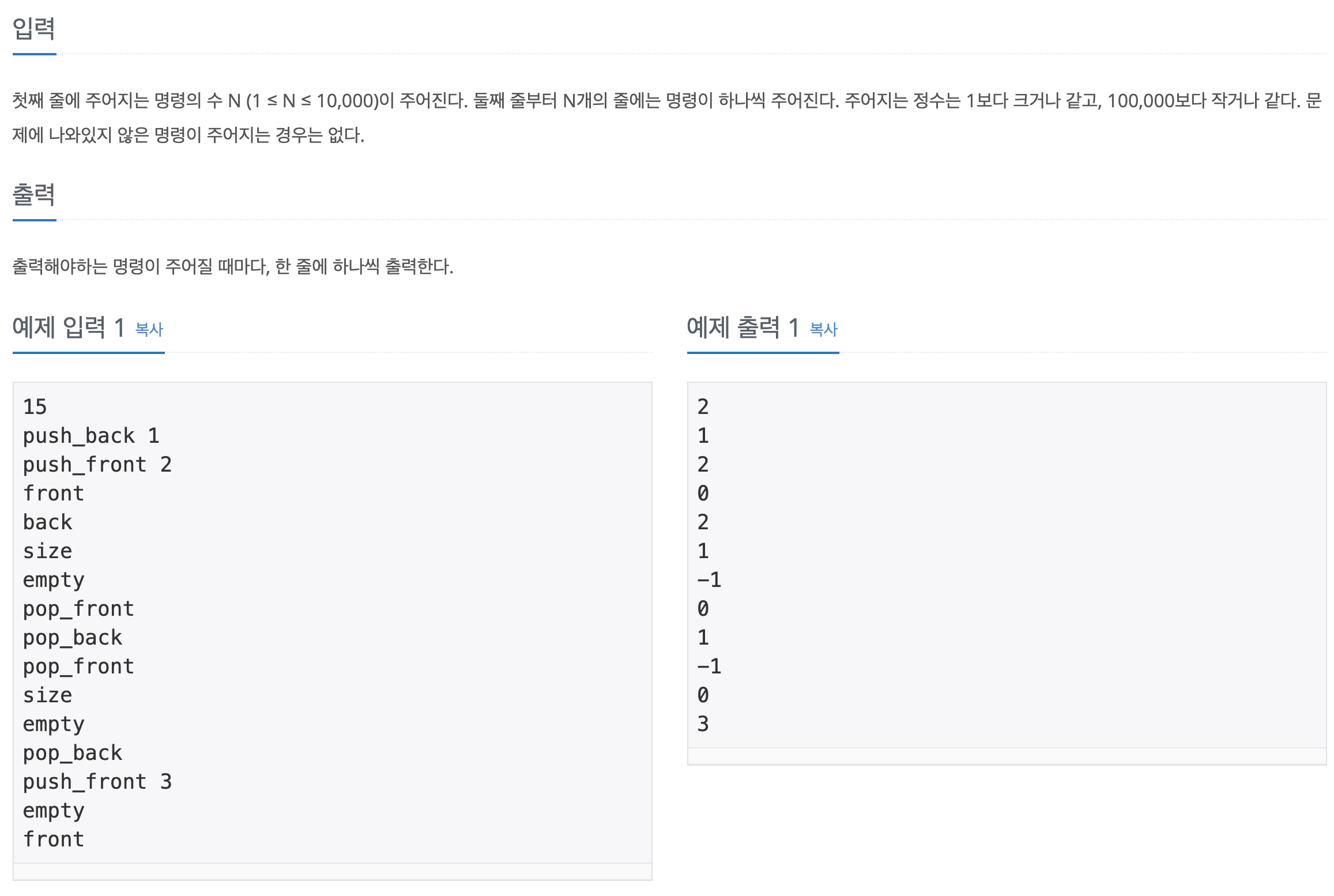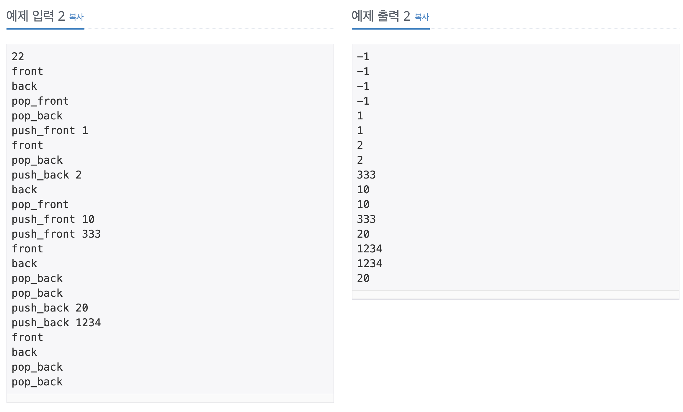 덱에 요소가 없다면 -1을 출력하는 예외처리도 신경써서 해줘야 한다.