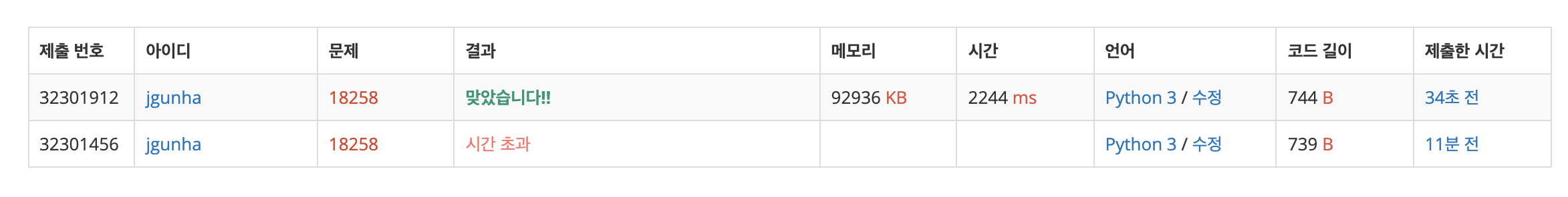 코드를 짜는 것은 쉽다, 하지만 리스트로 구현을 하는 경우 O(n)의 복잡도를 갖기 때문에 시간 초과가 발생한다.