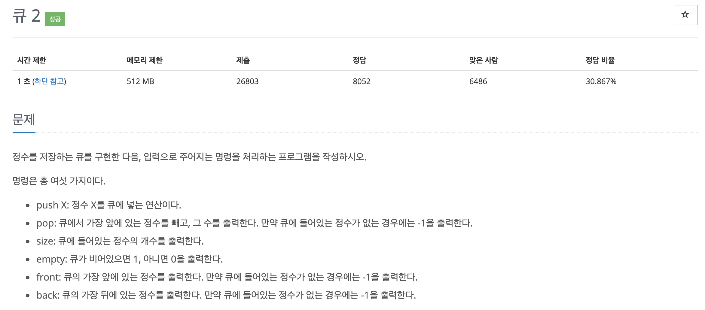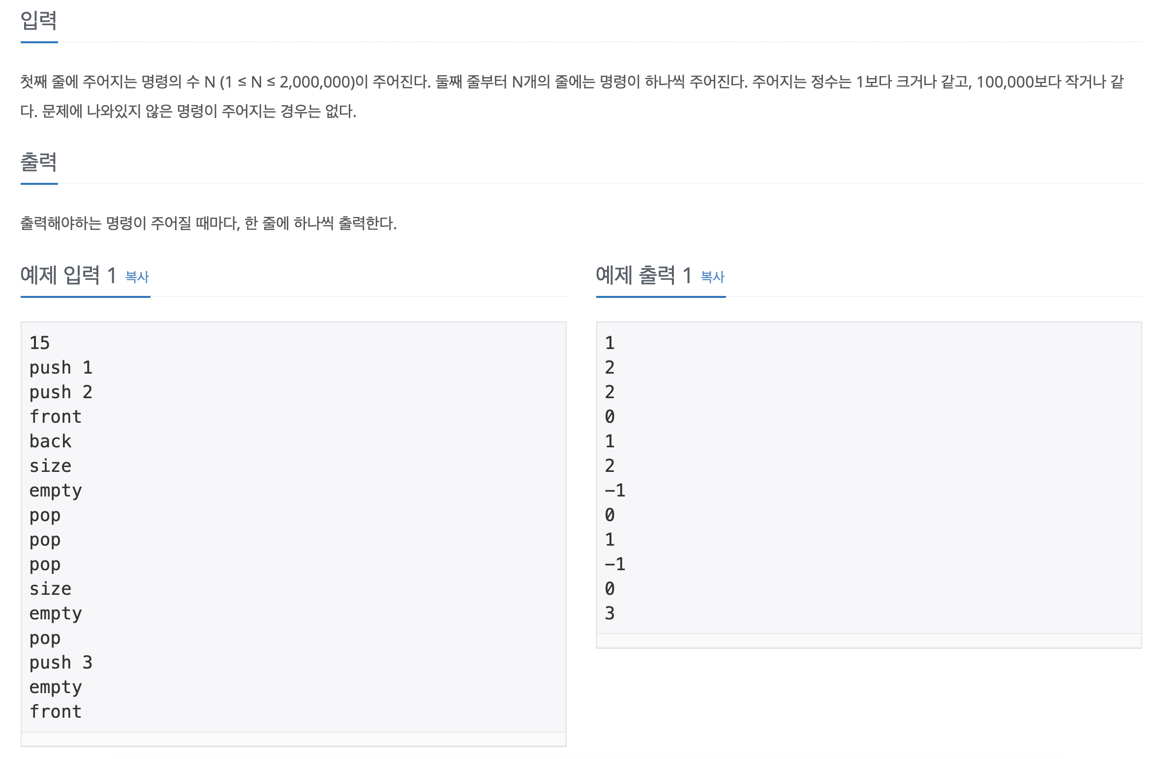 백준 18258번 큐2 문제이다.