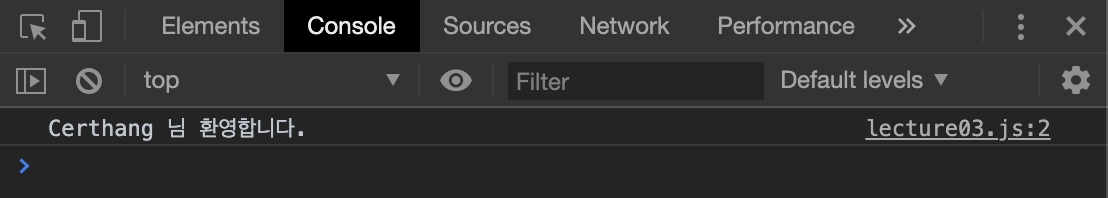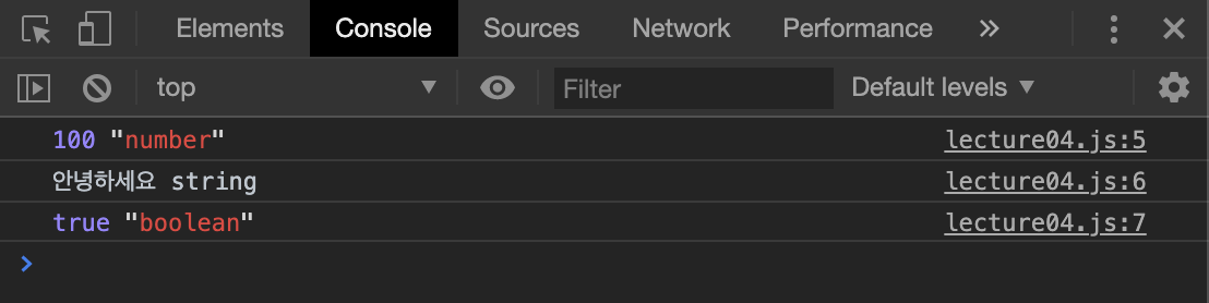 변수에 문자열을 저장하고 console 창에 출력한 값은 다음과 같다.