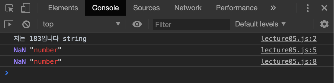 parseInt와 parseFloat을 통해 문자열의 앞부분 183이 정수값과 실수값으로 변경되어 출력되었다.