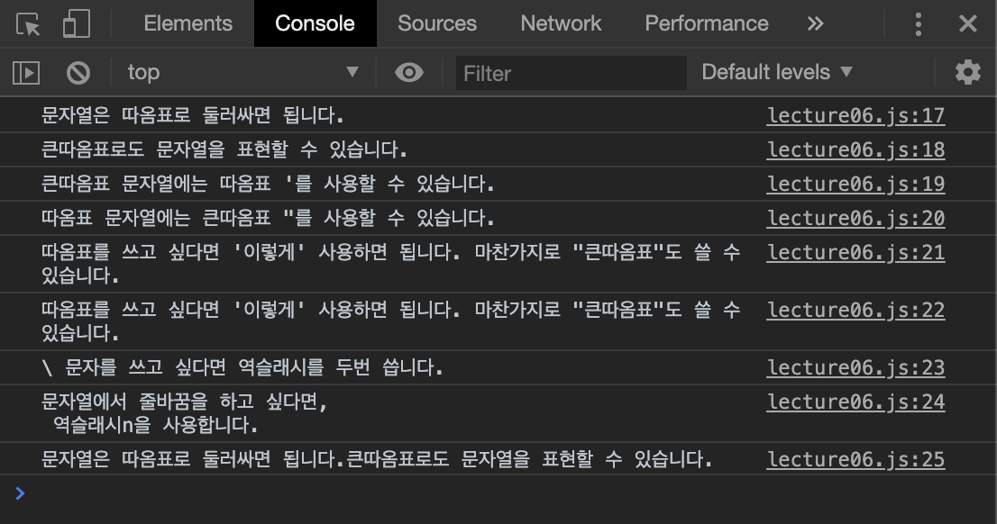 var d='따옴표 문자열에는 큰따옴표 "를 사용할 수 있습니다.';