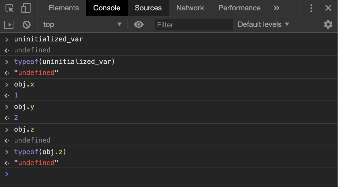 초기화 해주지 않은 부분을 읽으려하면 undefined가 나오는 것을 알 수 있다.