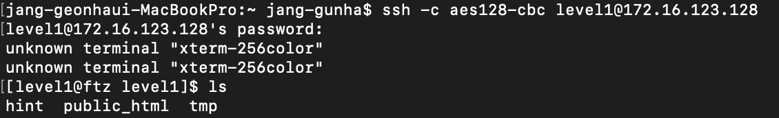ssh -c aes128-cbc level1@서버ip