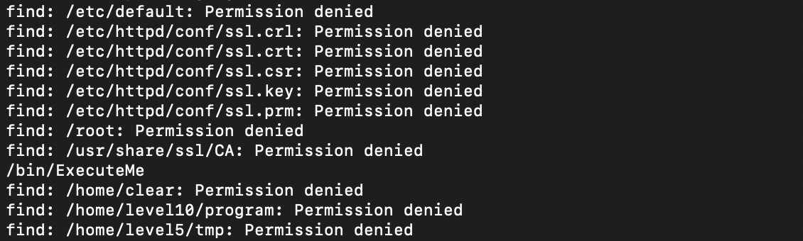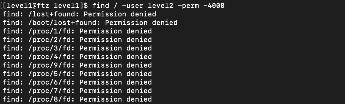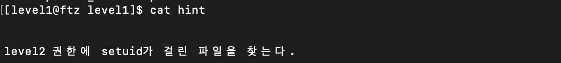 Find 명령어를 통해 level2의 권한에 -perm -4000을 입력하여 setuid가 걸린 파일을 찾아보았고