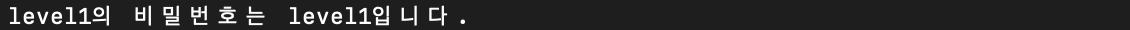 Trainer10 단계를 마치고 받은 비밀번호는 level1이다.