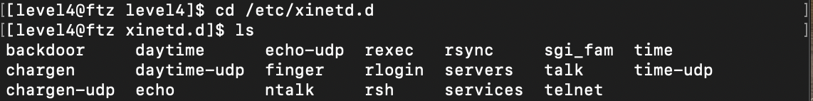 Id: level4, pw: suck my brain 을 입력하여 로그인을 하였고 ls 명령어를 통해 파일을 확인하였다.