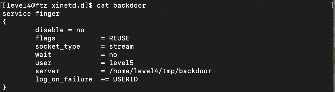Finger 명령어를 통해 실행하니 level5의 패스워드를 얻을 수 있었다.