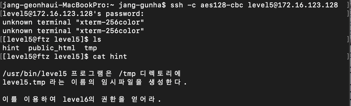 ssh -c aes128-cbc level5@서버ip