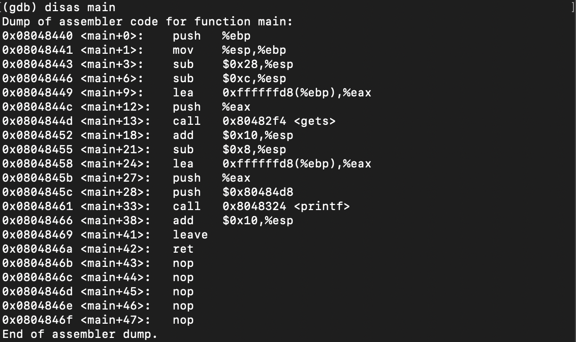 Main함수의 구조를 살펴보니 44바이트를 채우고 shell 코드의 주소를 넣으면 될 것 같다.