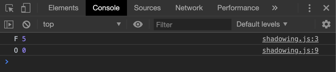 shadowing_example 함수의 안과 밖에서 모두 val 변수를 사용하고 있다. 함수가 호출된 경우에는 그 안에서 선언된 값을 사용하고