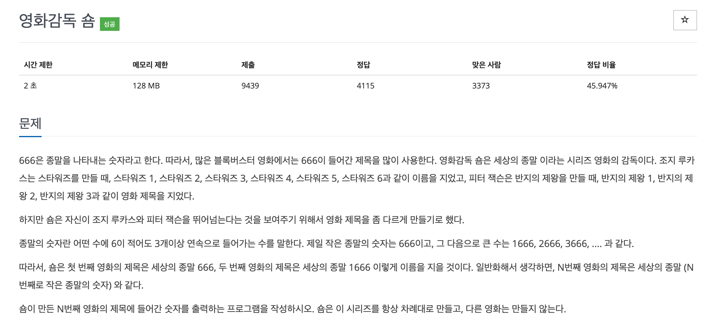 백준 1436번 영화감독 숌 문제이다.