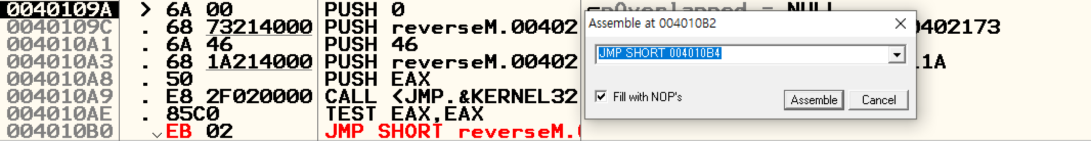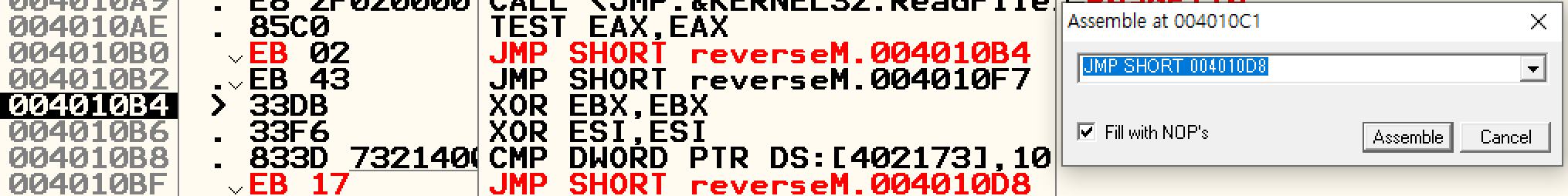 그러므로 JNZ를 무조건 분기하게 되는 JMP로 바꾸어 주었다.