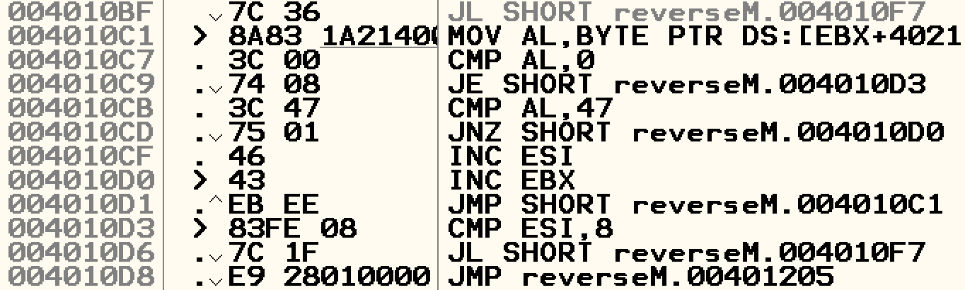 그렇지만 아래쪽에 동일한 명령이 004010D8 주소에 있으니 그쪽으로 가보자