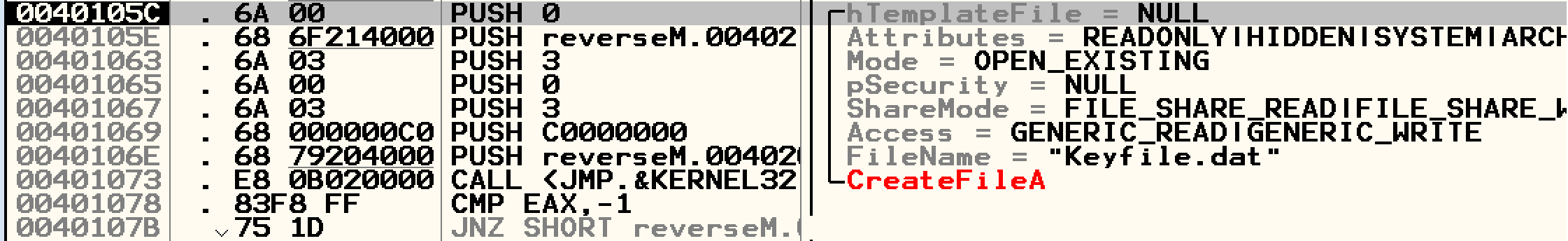 CreateFileA에서 Keyfile.dat 파일을 필요로 하고 있으니 해당 파일을 아무 값이나 넣어서 생성해 주었다.