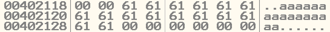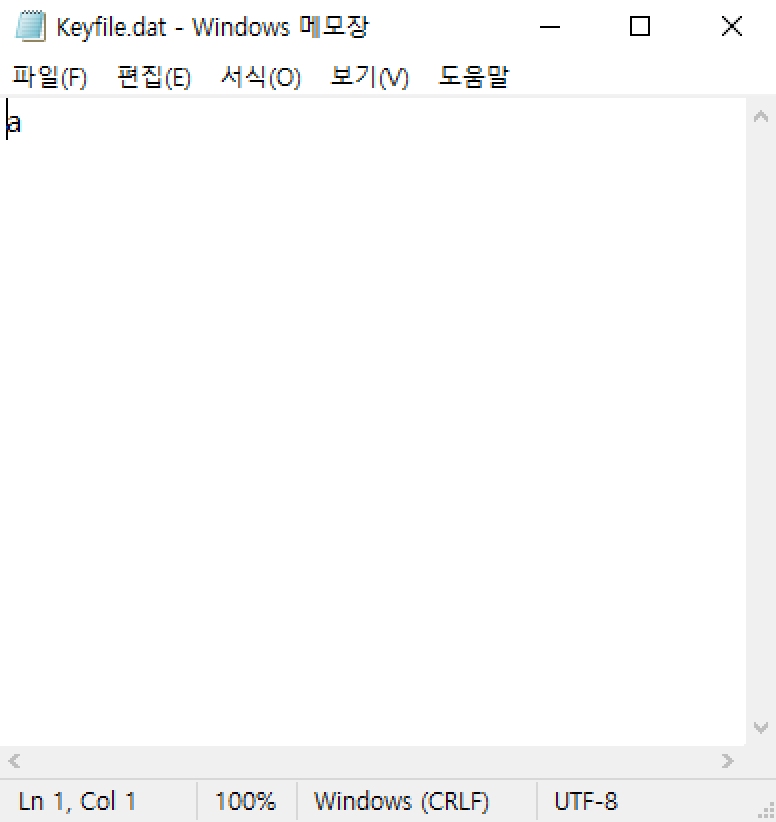 402173의 메모리 주소의 값에는 1의 값이 있는 것이 보인다. 아무래도 keyfile에 써 넣은 'a' 한글자의 길이인 것 같다.