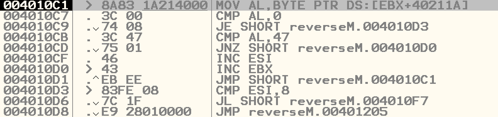 문자가 G라면 ESI와 EBX가 둘 다 증가하고 G가 아니라면 EBX만 증가하여 다음 문자를 확인하도록 한다.
