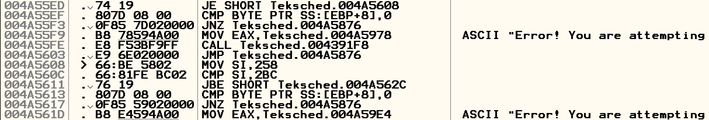 이번 단계는 Teksched 프로그램을 여러군데의 패치를 통해서 크랙하는 단계이다.