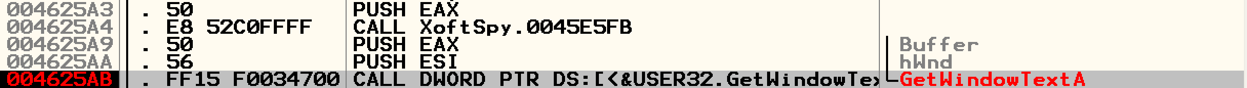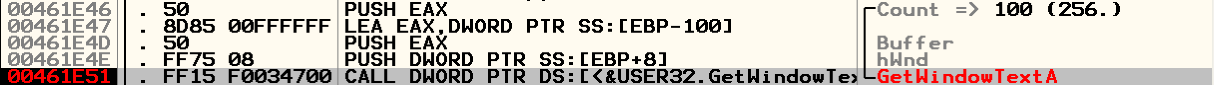 여러가지 API가 있지만 getWindowTextA를 살펴본다.