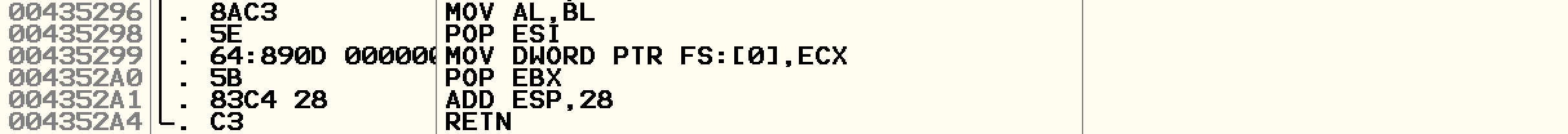 진행하다보면 RETN 전에 MOV AL, BL 이 보인다.