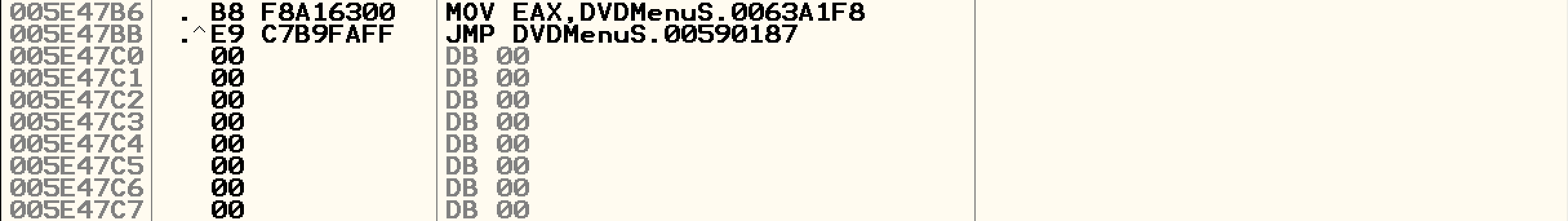 쭉 내려주면 005E47C0 부터 쭉 비어있는 것이 보인다.