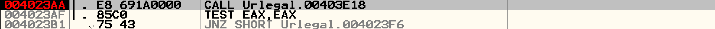 분기문이 존재하고 분기문은 Call 후 EAX 값을 통해 분기하고 있다.