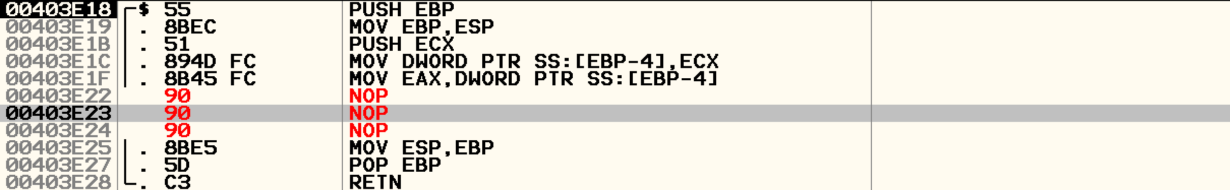 해당 코드를 NOP으로 변경시켜준다.