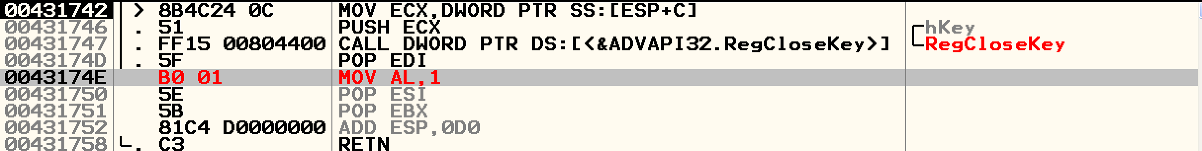 마지막 RETN 되기전에 EAX를 입력하는 부분은 MOV EAX, EBX이다.