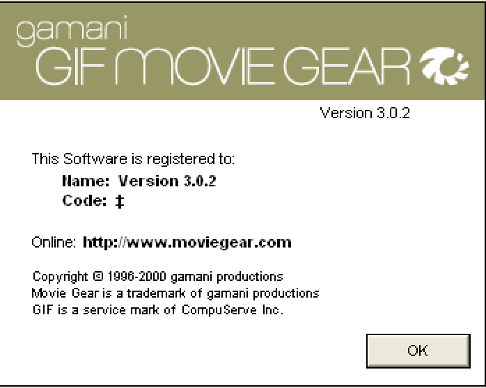 프로그램이 실행되고 Help -> About GIF Movie Gear를 누르면 다음과 같이 나온다.