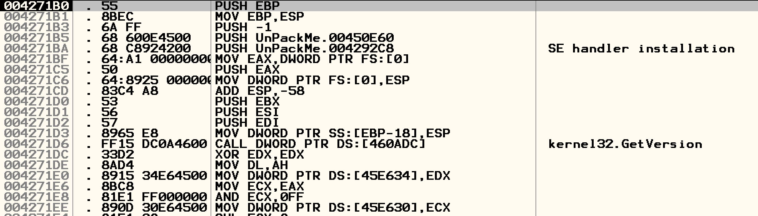 따라서 이 부분을 Original Entry Point(OEP)로 생각할 수 있다.