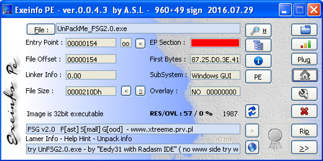 가장 먼저 볼 프로그램은 UnPackMe_FSG2.0 이다.