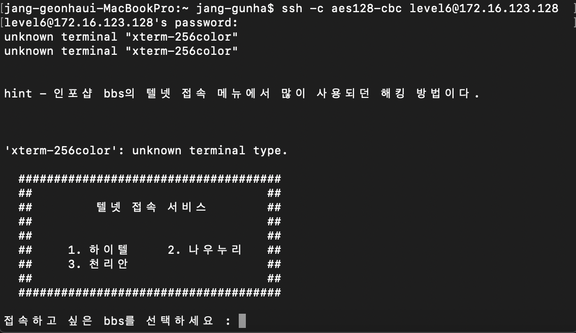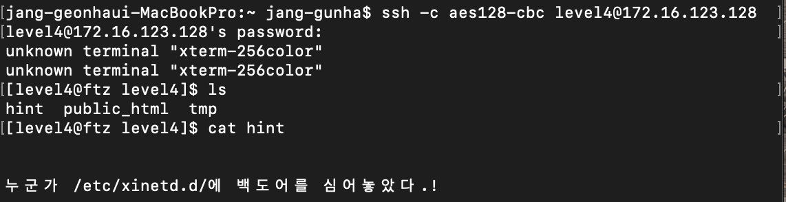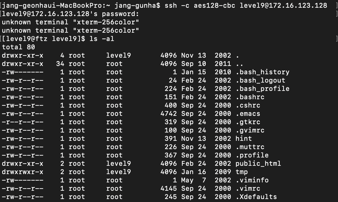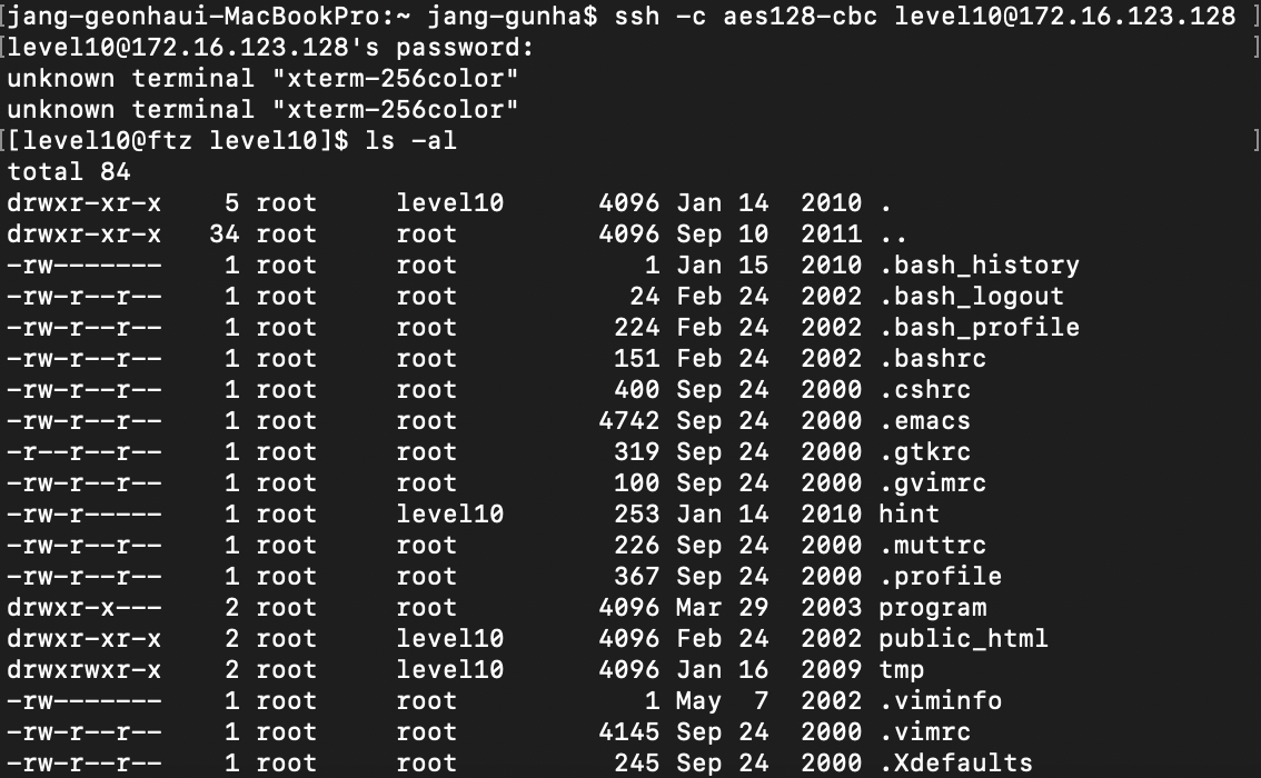 해커스쿨 ftz Level13 MacOS에서 푸는 해커스쿨 ftz 해커스쿨 ftz level13 단계이다. 먼저 ftz서버를 실행한다. 서버 실행을 모르면 ftz trainer1 단계에 소개되어 있다. Mac의 터미널을 열어 서버에 접속합니다. 명령어는 ssh -c aes128-cbc level13@서버ip 라고 입력합니다. Id: level13, pw: have no clue 로 로그인하여 파일을 확인하였다. hint를 확인하니 소스코드가 나왔고 코드를 살펴보니 i의 값이 0x1234567로 잘 덮어주면 될 것 같다. gdb를 통해 attackme 프로그램을 보기로 했다. main함수의 구조를 확인하였다. buf 배열과 dummy부분을 아무값이나 채우고 i는 01234567로 채우고 다시 dummy값고..