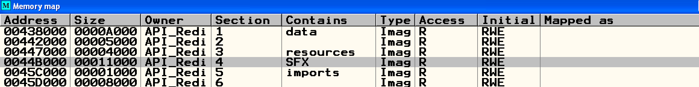 ptr 포인터의 주소를 확인하면 모두 SFX 영역에 들어있는 것을 확인할 수 있다.