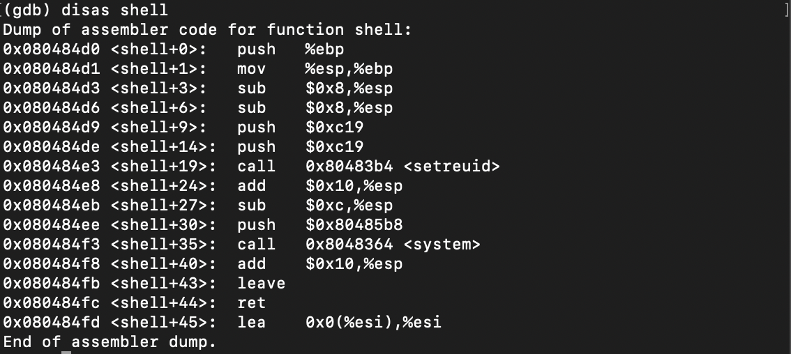 Shell함수의 주소를 보니 0x080484d0임을 알 수 있다.